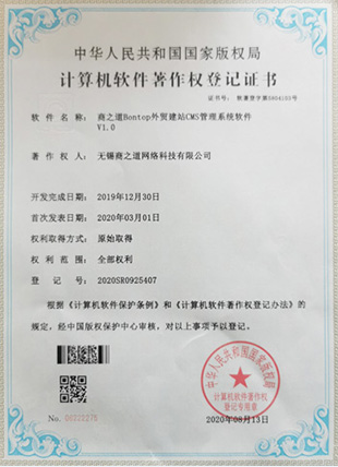 商之道網(wǎng)絡(luò)是江蘇省科技型中小企業(yè),是無錫市互聯(lián)網(wǎng)協(xié)會理事單位,無錫市軟件行業(yè)協(xié)會會員單位,擁有自主知識產(chǎn)權(quán)23項(xiàng),包括商之道建站CMS管理系統(tǒng),外貿(mào)建站管理系統(tǒng)、企業(yè)站群管理系統(tǒng)及周邊技術(shù)的自主研發(fā),是一家國內(nèi)建站的源頭技術(shù)廠家。